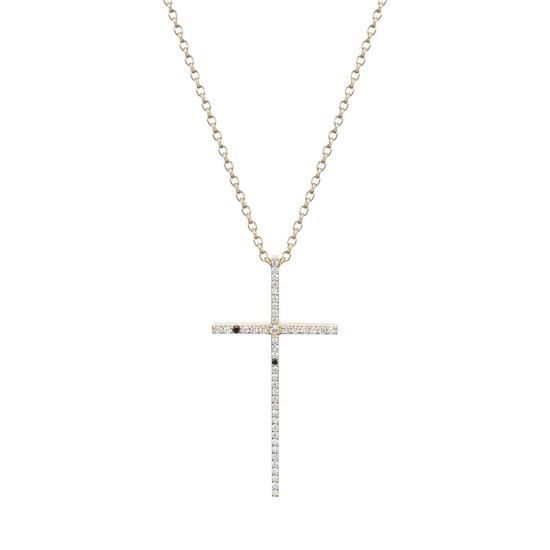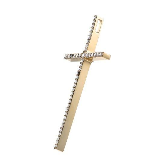 シャープなクロスモチーフにセッティングしたダイヤモンドは、センターストーンを除き、横に12石、縦に31石。